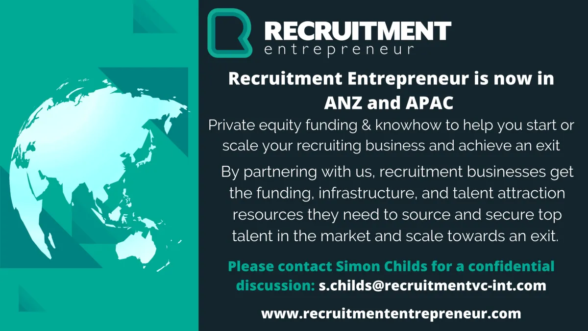 By partnering with us, recruitment businesses get the funding, infrastructure, and talent attraction resources they need to source and secure top talent in the market and scale towards an exit. Please contact Simon Childs for a confidential discussion: s.childs@recruitmentvc-int.com